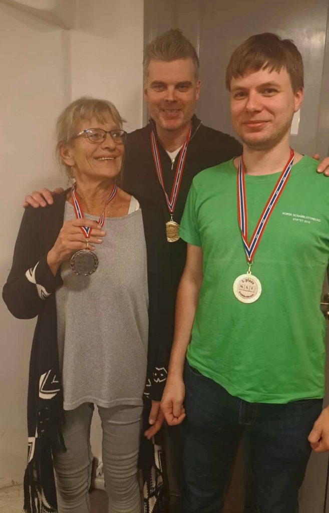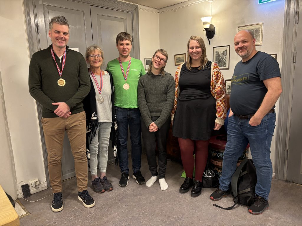 Her er hele toppen av resultatlista, fra 1. til 6. plass: Fra venstre mot høyre: Knut Martin Helset, Kirsti Næss, Levi André Tallaksen, Io Sollie Toft, Anlaug Frydenlund og Kenneth Kamp. Lurer du på mer om resultater finner du dem her: Scrabbeller