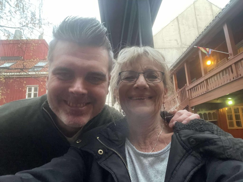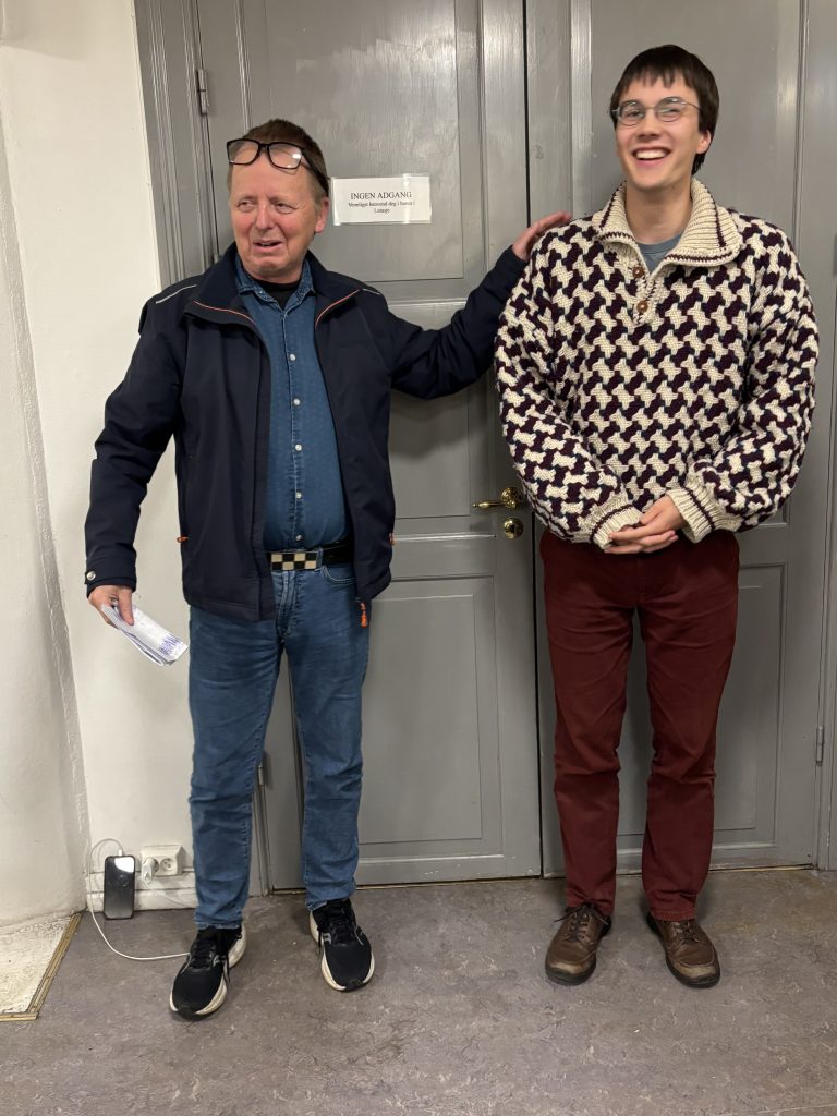 Knut Martin Helset og Kirsti Næss ute for å få litt luft mellom slagene. Som du ser var det ikke noe galt med stemningen selv mellom krevende finalekamper.